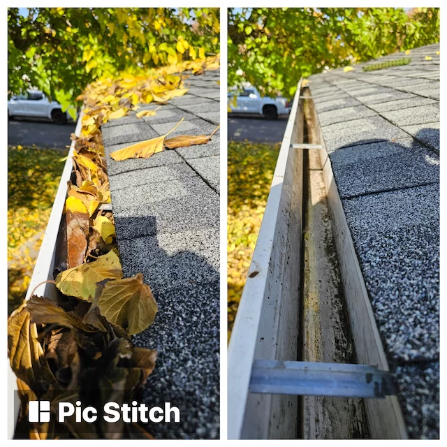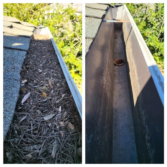 A typical gutter cleaning is removing loose debris and unclogging backed-up areas.